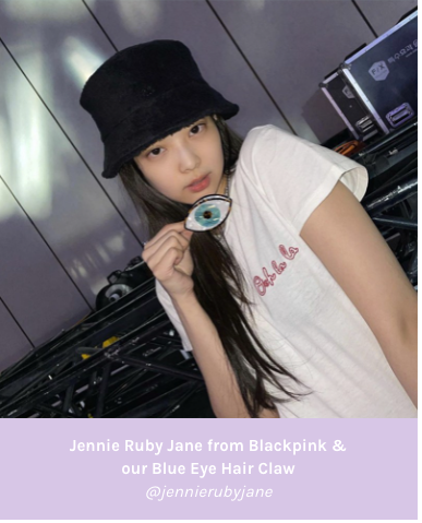 Eye hair claw by Coucou Suzette. Hair claw featuring Coucou Suzette's signature eye in blue on a gold tone hair claw. This iridescent blue, white and brown hair clip will spruce up any hairstyle and enhance a look. Made from plant-based eco-friendly cellulose acetate.