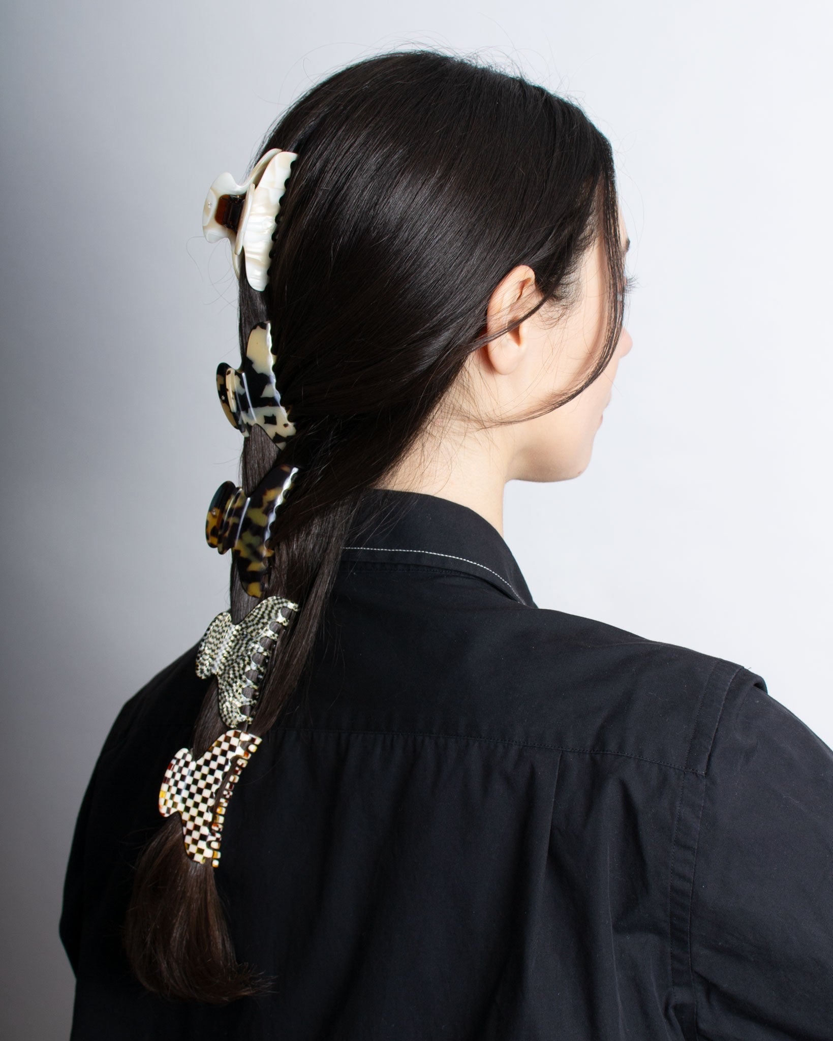 orris london first hair accessories collection! To make the best quality and long-lasting hair claws and barrettes, our hair accessories are handmade in France from the best quality acetate sheet from Italy. Each piece has been individually cut, shaped, decorated, and hand-polished to a glossy and luxurious finish.