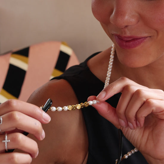 Hand-sourced and strung freshwater pearls.