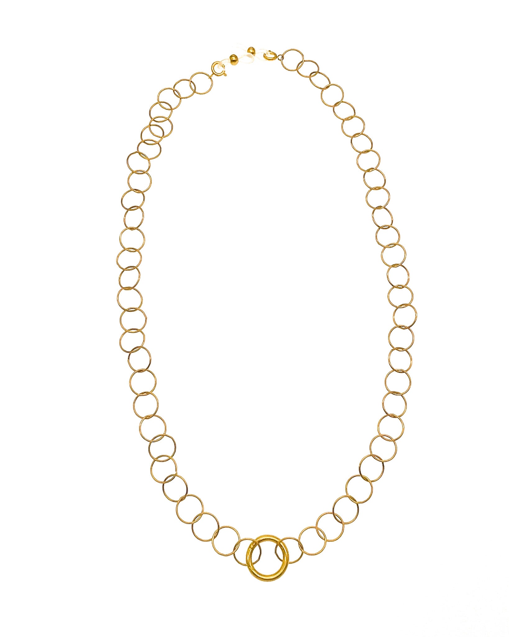 Many Moons features full moon-shaped seamless circle links and a golden carabiner, bringing a playful and energetic vibe. It's perfect for holding glasses in 2 ways. You can also add some playful charms, or just rockin' as a long necklace.