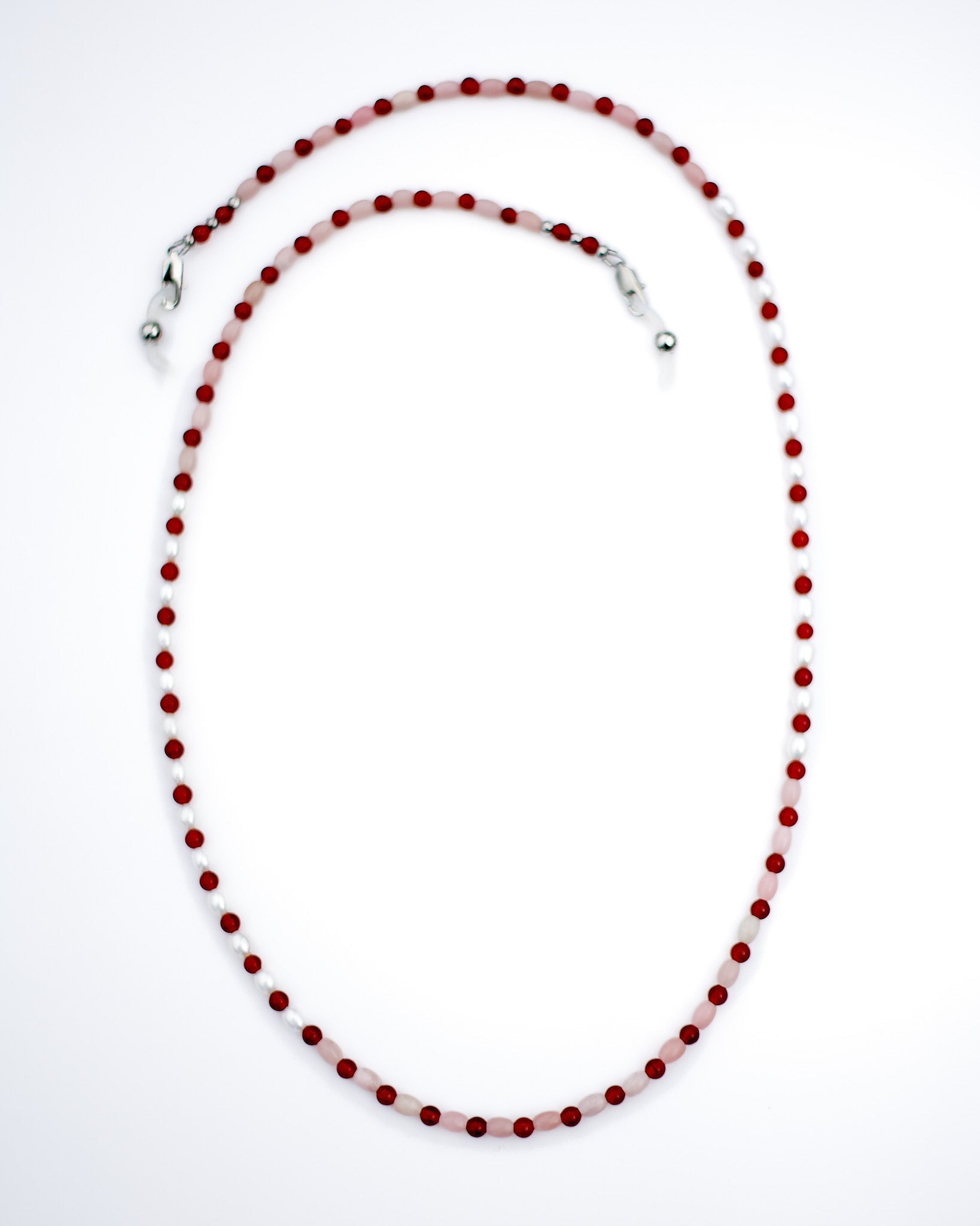 Elevate everyday function with soft summer tones — this style combines luminous freshwater pearls, blush-pink opal, and warm agate beads. Equal parts playful and refined, it keeps your glasses close while doubling as a delicate accessory.
