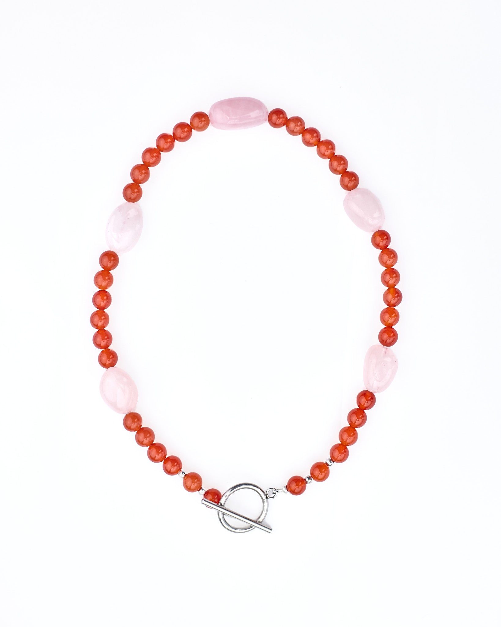 Pink Pebble | Rose Quartz & Red Agate Necklace