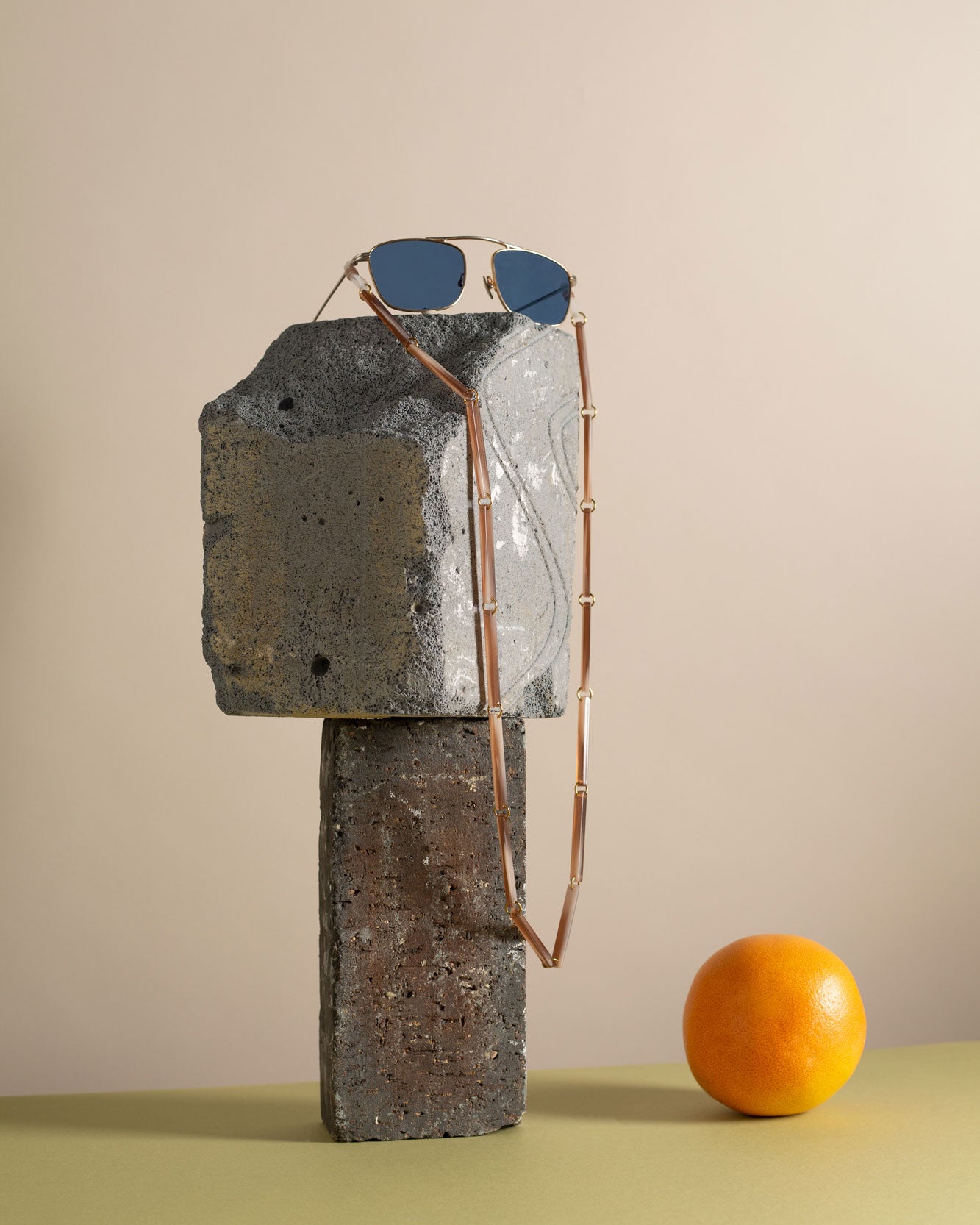 Spaghetti Glasses Chain is defined by a super-sleek silhouette. Finished with double silicone loops to safely grip glasses arms, it offers a chic way to keep spectacles close.