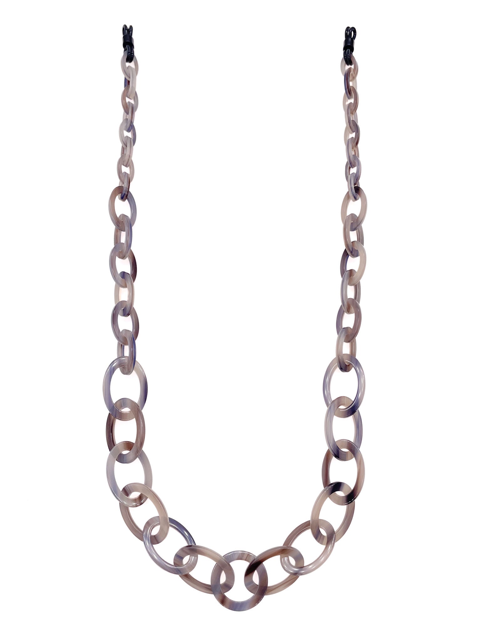 Smiley Glasses Chain is a contemporary take on the retro glasses chain. It is composed of graduating hoops made of Italian acetate, joined by double silicone loops at either end to grip the arms of spectacles. The Smiley Glasses Chain is a statement piece of jewellery that keeps your eyewear safe and close. A practical everyday accessory for the eyewear lovers.